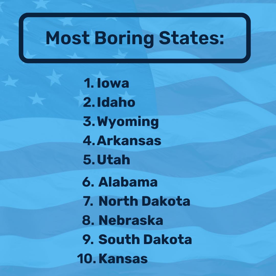 Rural states that are sparsely populated and heavily agricultural are considered the most boring. Of those, Iowa stands out as the most dull, according to Americans.